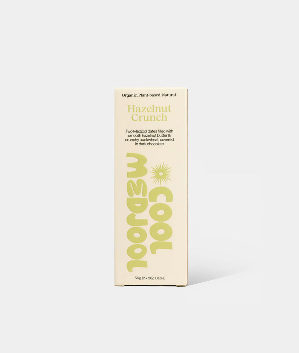 Cool Medjool Hazelnut Crunch is a plant-based treat made with soft, organic Medjool dates filled with hazelnut butter and crunchy buckwheat, then coated in date-sweetened dark chocolate. Naturally sweet, high in fibre, and free from refined sugar—perfect for snacking, dessert, or gifting. A satisfying crunch meets creamy indulgence in every bite.