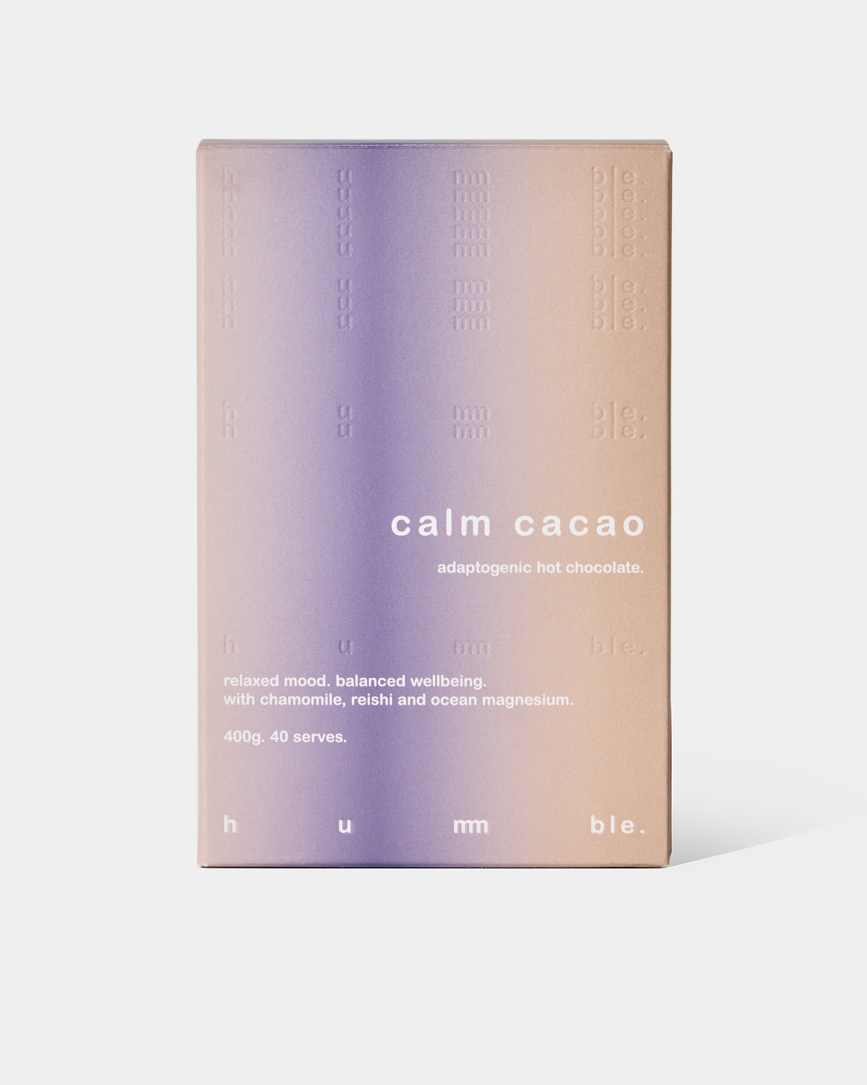 Cacao* (45%), panela*, botanical blend* (shatavari, chamomile, passionflower), mushroom blend* (reishi, tremella), coconut water powder* (coconut water, tapioca maltodextrin), ocean mineral magnesium*, sea salt.