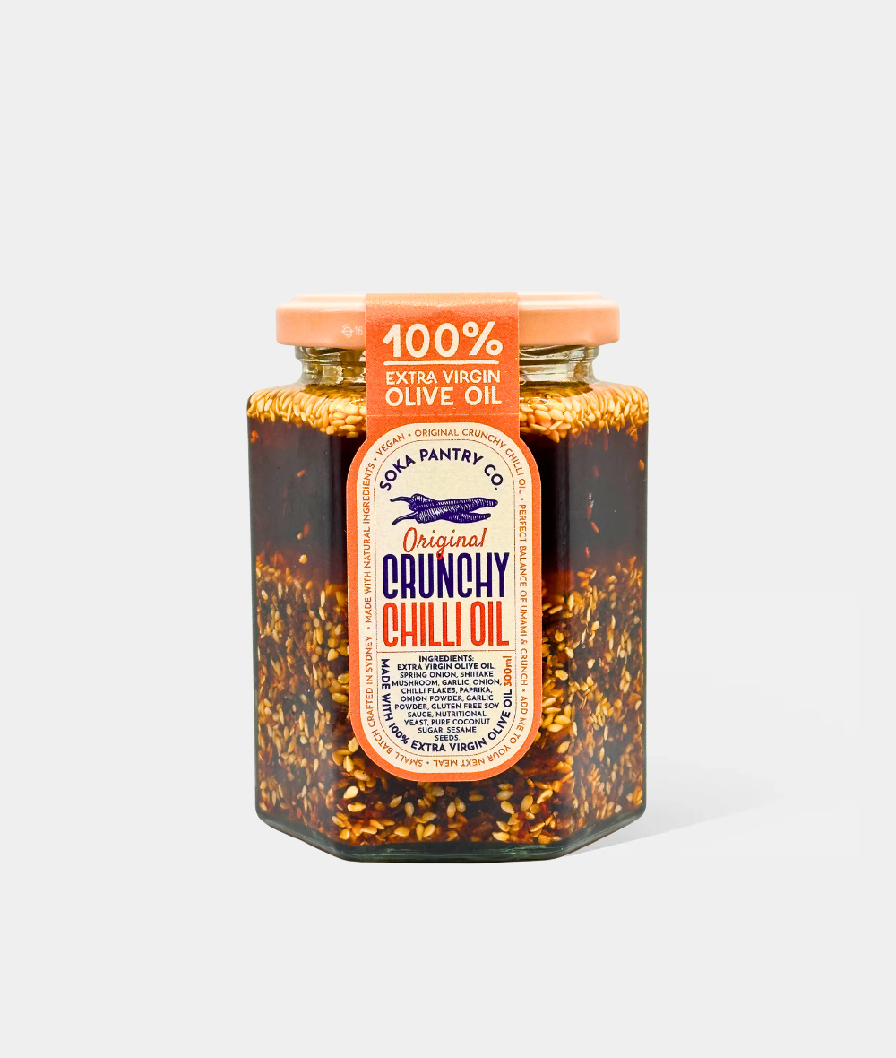 Coming from Asian and Middle Eastern Backgrounds, Sophia and Kaan appreciate the range of flavours that the World has to offer. Soka Pantry Co. creates authentic quality pantry staples that we love making and eating and are proud to share. They started seriously making their own batch of chilli oil when they weren't completely sold on store-bought jars, they were infused in vegetable or canola with MSG. And they LOOOVE olive oil and couldn't find any brands that were made with olive oil, so they crafted their own! Gotta love that.