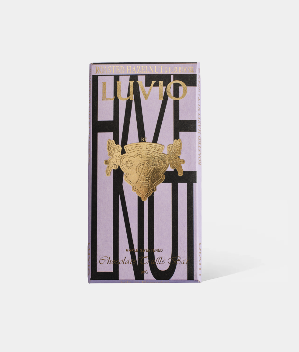 Loco Love Luvio Roasted Hazelnut Fleur de Sel blends rich roasted hazelnuts and delicate flake salt into creamy tigernut chocolate, creating a snack with deep nutty flavour and satisfying crunch.