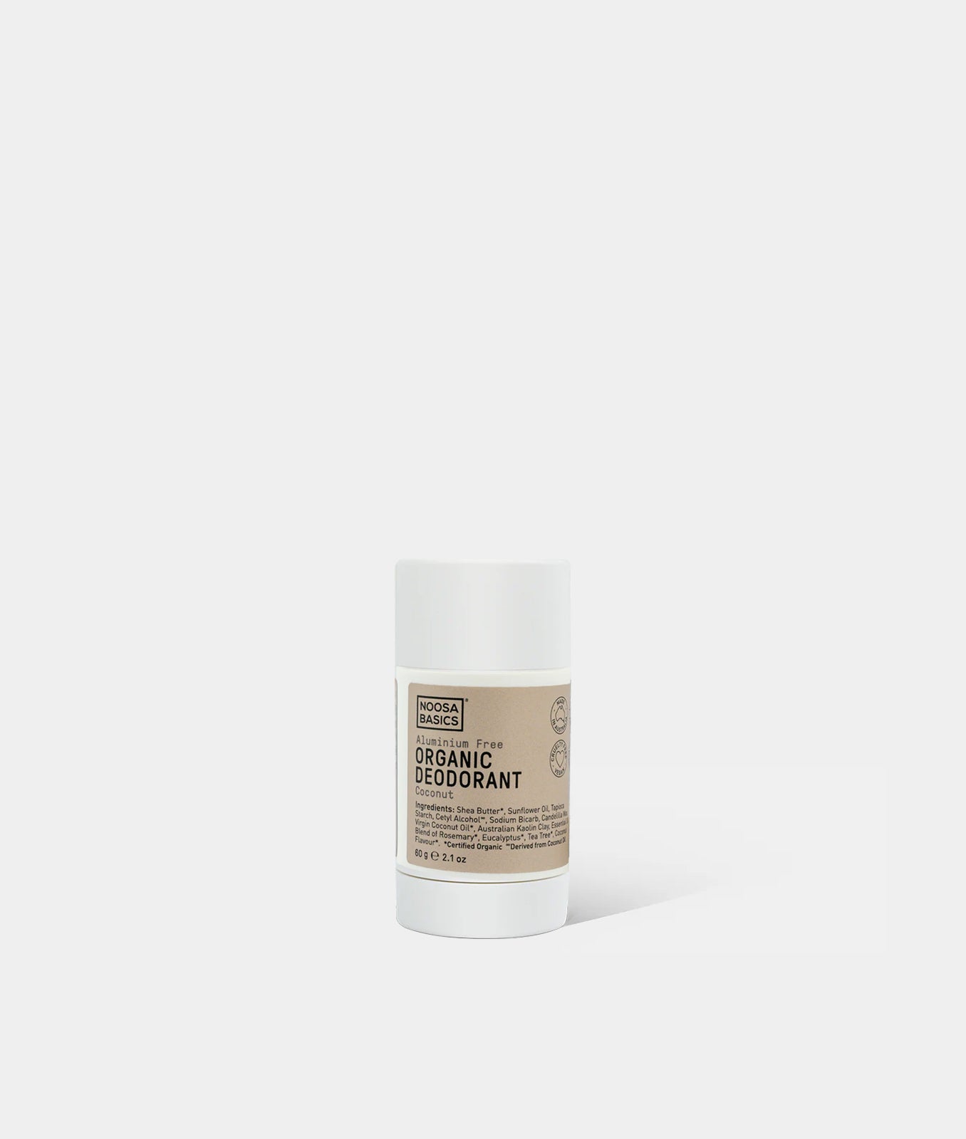 Shea Butter, Sunflower Oil, Tapioca Starch, Cetyl Alcohol∞, Sodium Bicarb, Candelilla Wax, Virgin Coconut Oil, Australian Kaolin Clay, Essential Oil Blend of Rosemary, Eucalyptus, Tea Tree, Coconut Flavour.